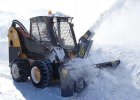 Привод погрузчика снега осуществляется от силового блока, размещенного в задней части машины. В состав блока входит дизельный двигатель, муфта сцепления и насосный агрегат на привод хода и рабочего оборудования.